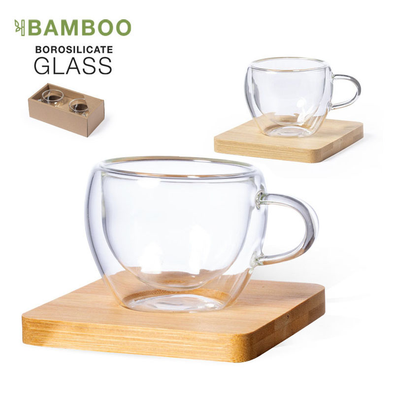 Compresi 2 sottobicchieri in bambù, con fustellatura alla base per adattarsi perfettamente a ogni tazza.
