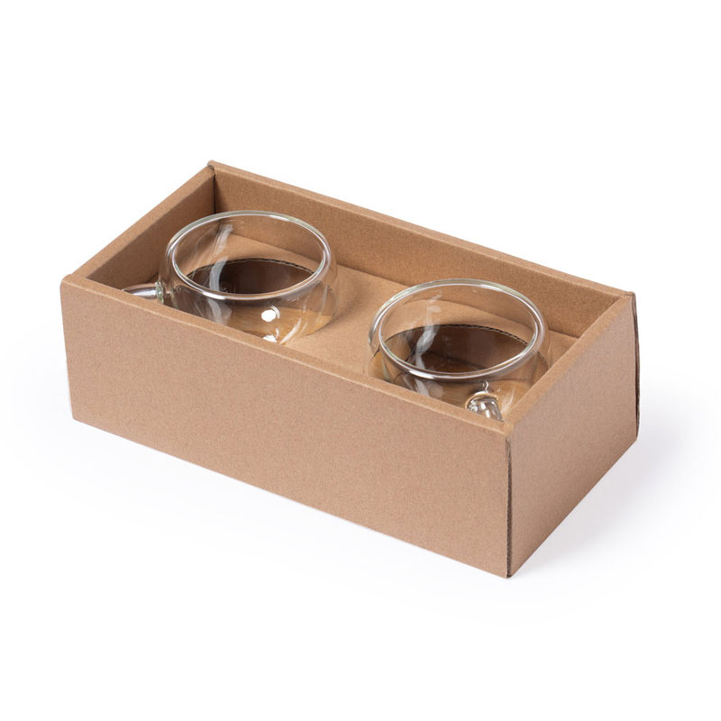 Il set è confezionato in un astuccio di cartone kraft, con scomparto individuale per ogni bicchiere.