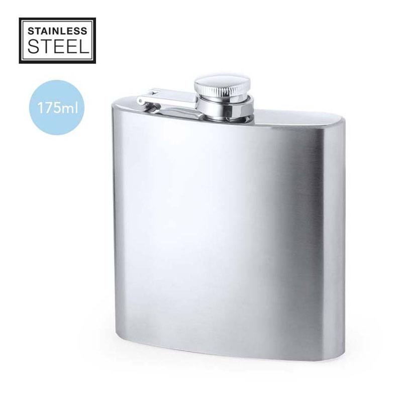 Fiaschetta da 175 ml con corpo in acciaio inossidabile e tappo a vite di sicurezza.