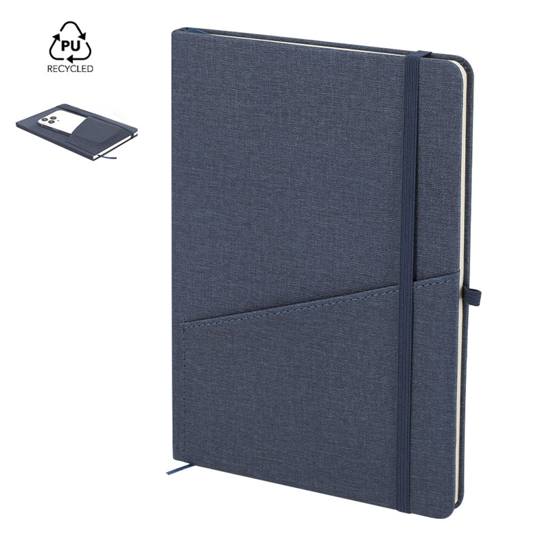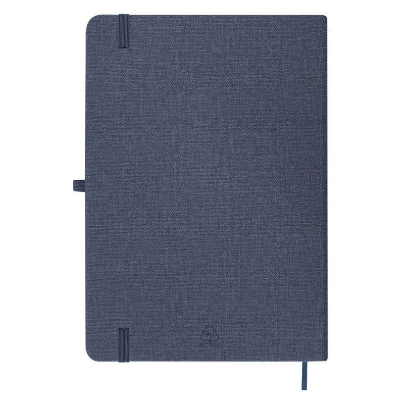 • Taccuino con copertina rigida in PU Riciclato, finitura lino.