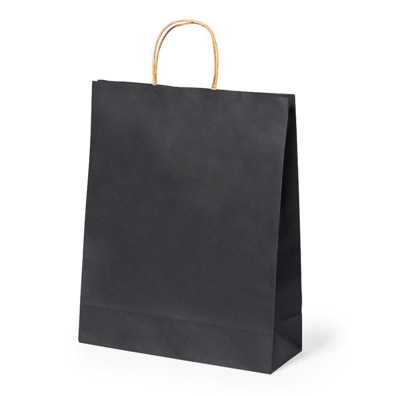 Borsa della linea natura, realizzata in carta riciclata da 100g/m2 e rifinita in nero.