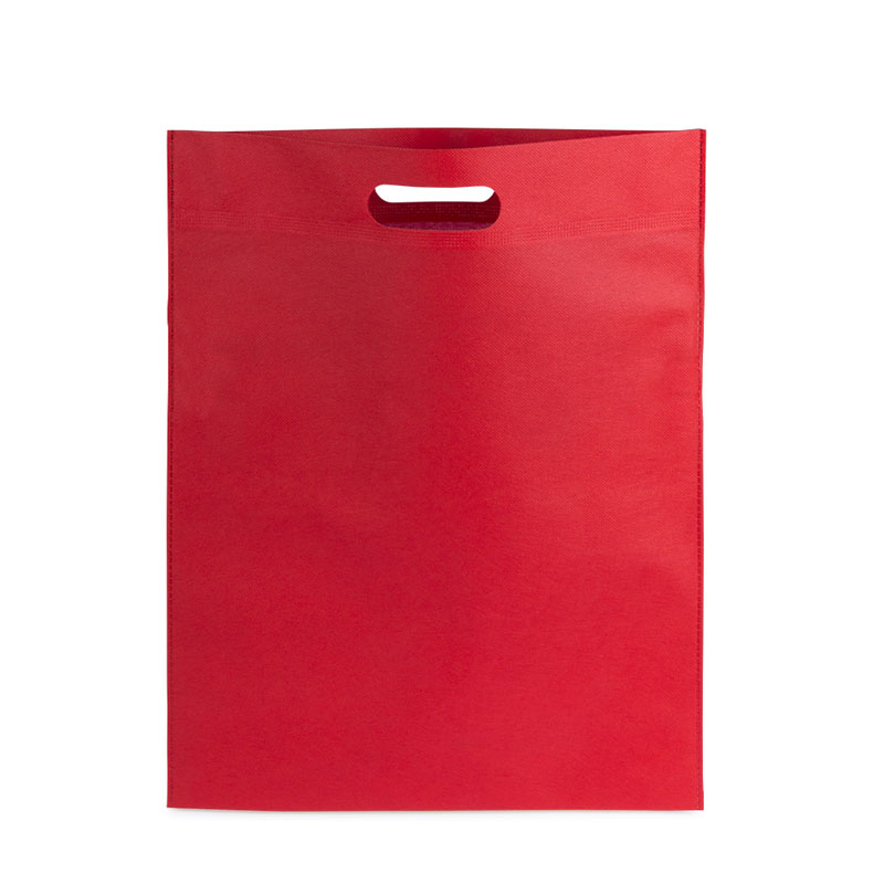 Shopper in TNT 80 g / m2, con manici fustellati rinforzati, soffietti e finitura termosaldata.