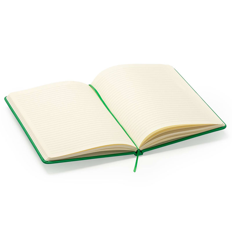 100 fogli avana a righe, chiusura elastica e segnapagina.