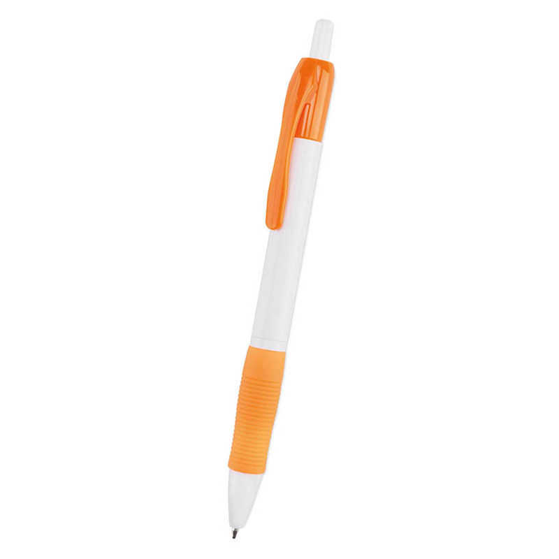 Penna a sfera classica con meccanismo push-up, design bicolore, dal corpo bianco in finitura morbida.