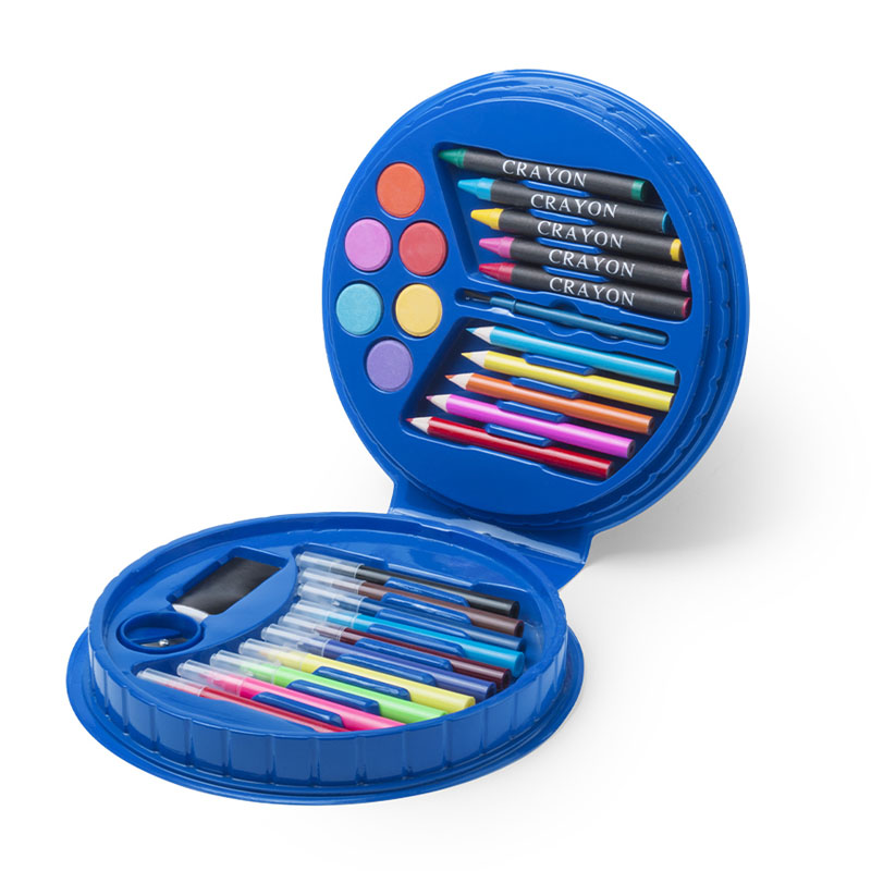 Set composto da 14 pezzi in astuccio dal design tondo, con corpo robusto rifinito in colori vivaci e interno con scomparti di sicurezza.