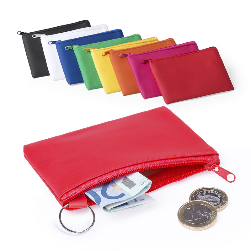 Portamonete in in morbido PU con chiusura a cerniera e portachiavi coordinato all'interno.