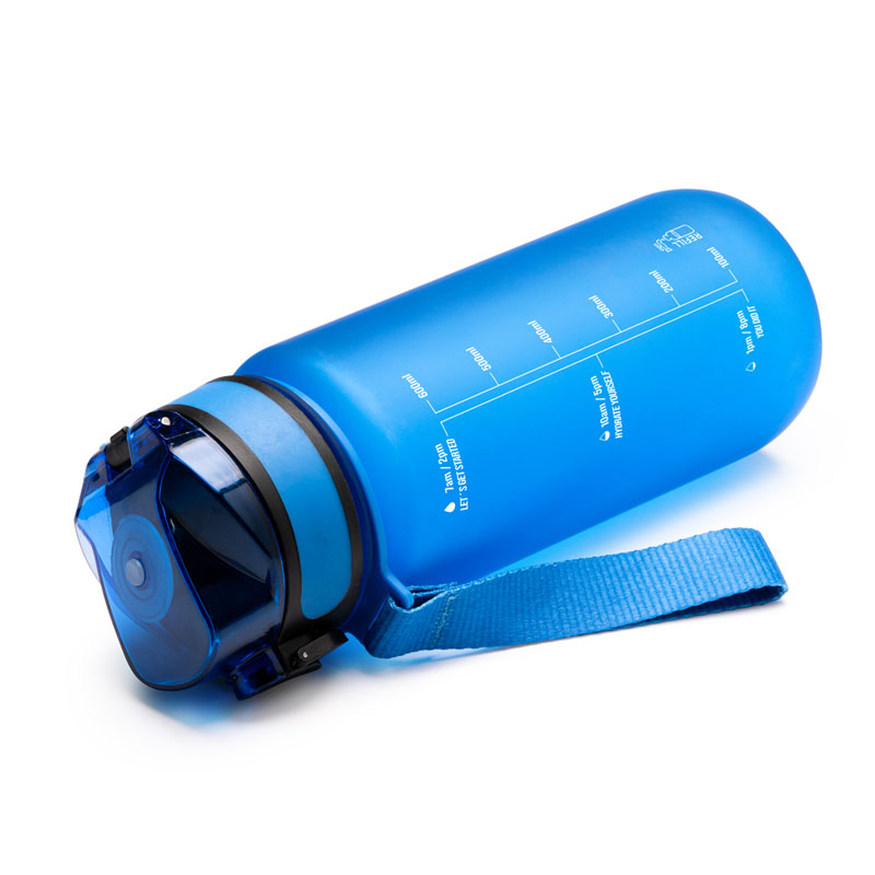 - Borraccia in tritan translucido, tappo a vite con coperchio con apertura a scatto e beccuccio per bere.