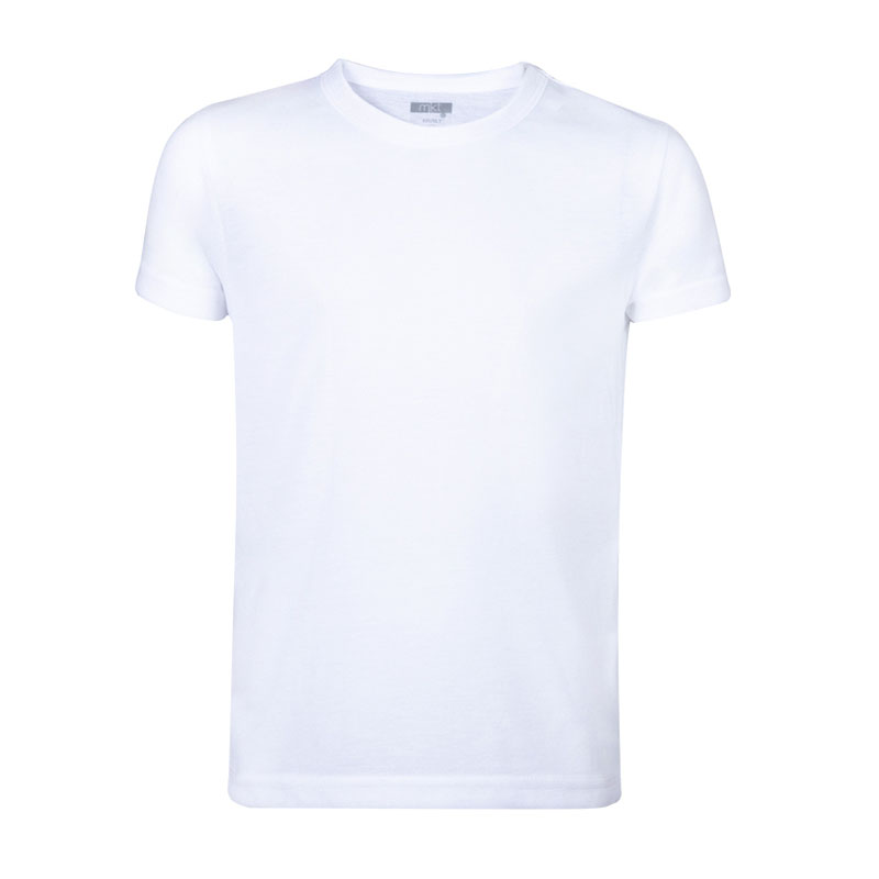 T-shirt per bambini in 100% poliestere traspirante da 140 g/m2 con trama di cotone.
