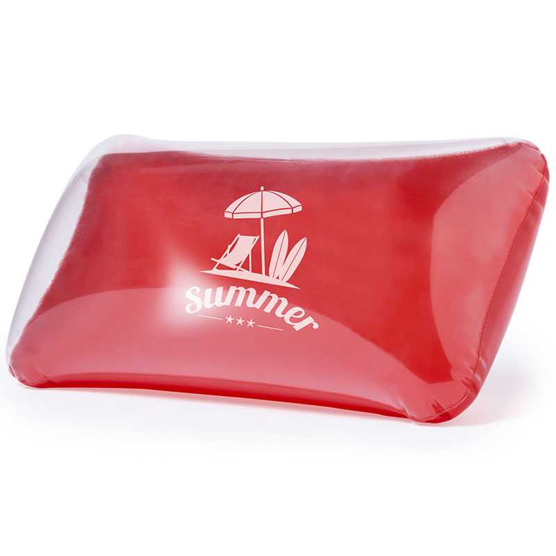 Cuscino gonfiabile in PVC, con rifinitura trasparente da un lato e colore pieno dall'altro.