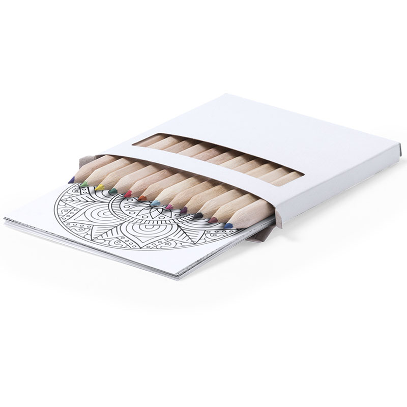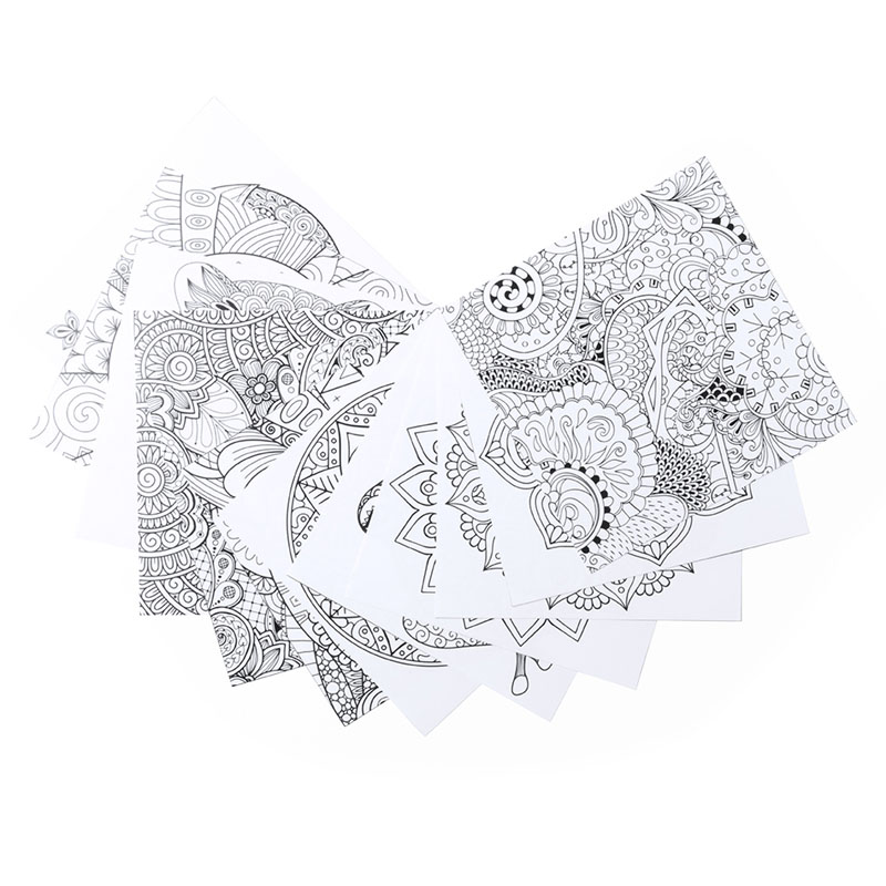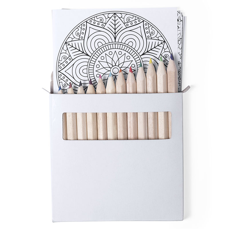 Set composta da 12 colori e 12 fogli con disegni Mandala da colorare.