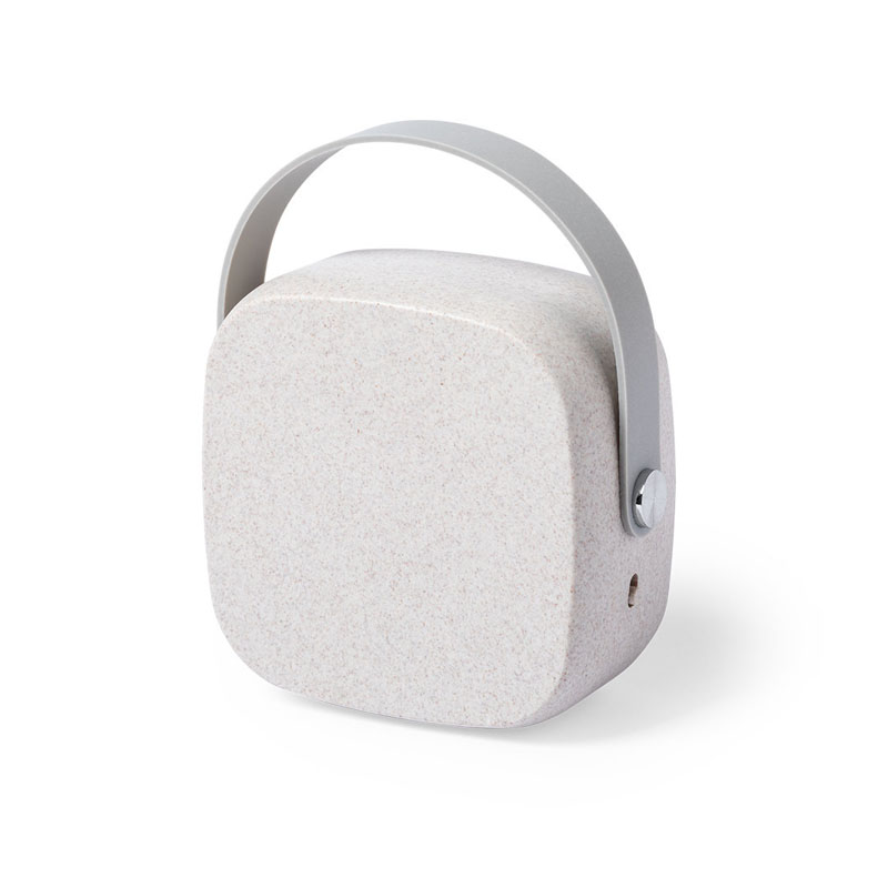 Altoparlante Bluetooth in una combinazione di pezzi di bambù dal taglio naturale e corpo in fibra di grano, per promuovere l'uso di materie prime naturali e ridurre le emissioni inquinanti. Di dimensioni compatte e con una pratica maniglia per il trasporto in morbido silicone, diventa un complemento perfetto per il tuo smartphone.