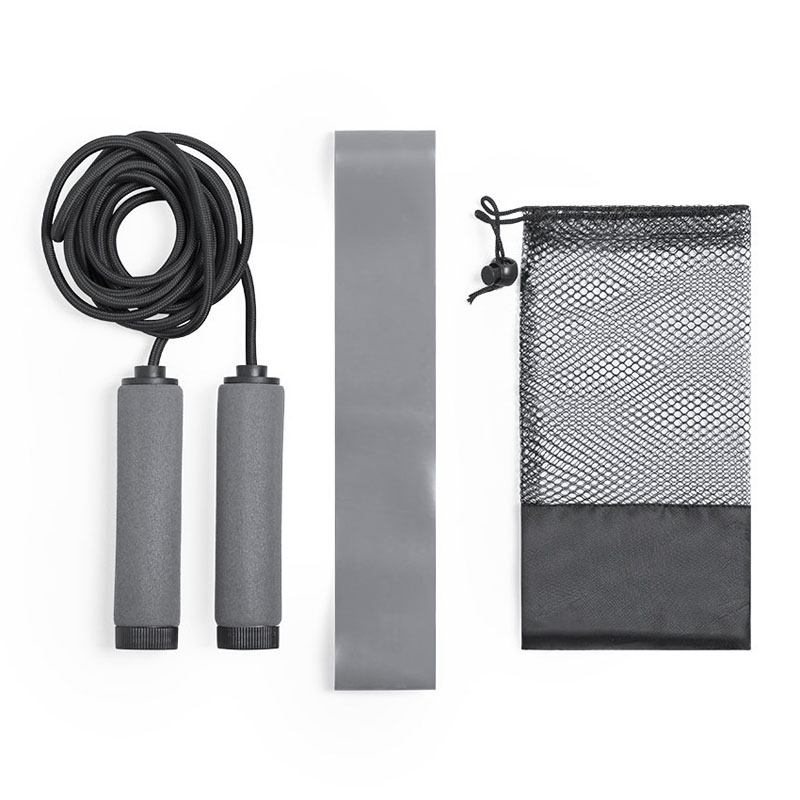 Set sportivo che include: 1 elastico da 25x5 cm in materiale TPE resistente e di media resistenza 1 corda da 260 cm con maniglie HIPS rivestite in EVA.