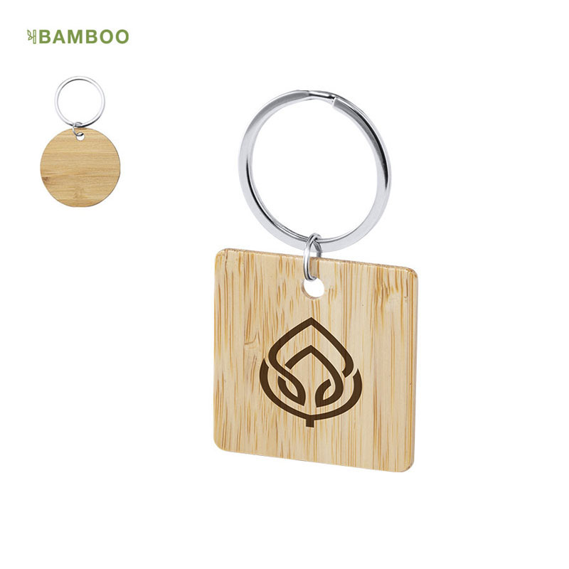 Portachiavi in bambù della linea Nature, disponibile in versione circolare, quadrata e rettangolare.