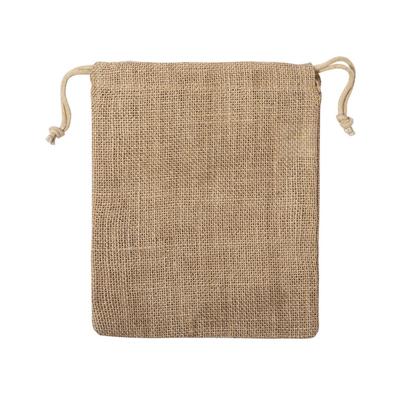 Shopper della linea Nature in resistente iuta di 260 g/m², con chiusura a cordoncino e finitura cucita.