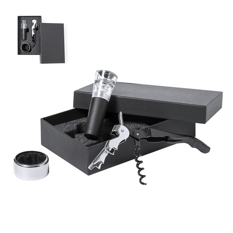 Include un tappo a goccia, un cavatappi in acciaio inossidabile e un tappo per il sottovuoto.