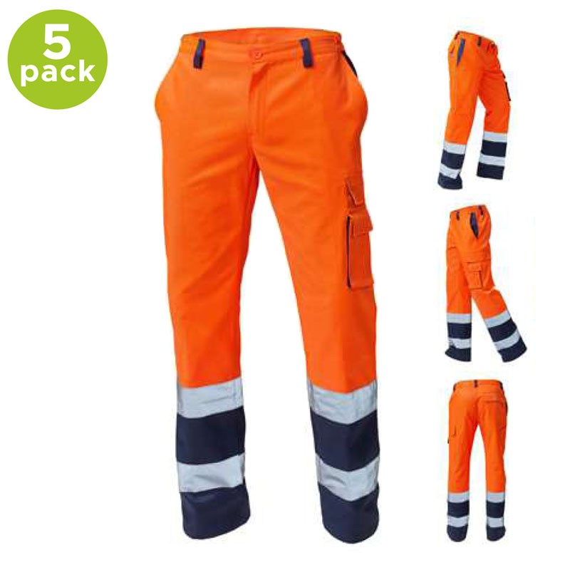 Pantaloni alta visibilità professionali da lavoro in confezione da 5 pezzi.