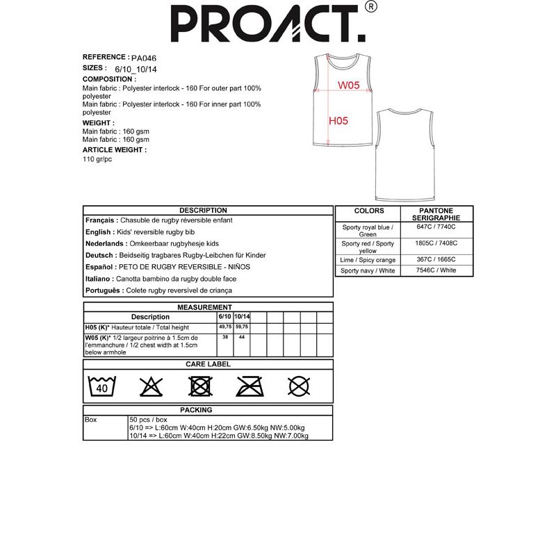 PA046 | Canotta bambino da rugby reversibile
