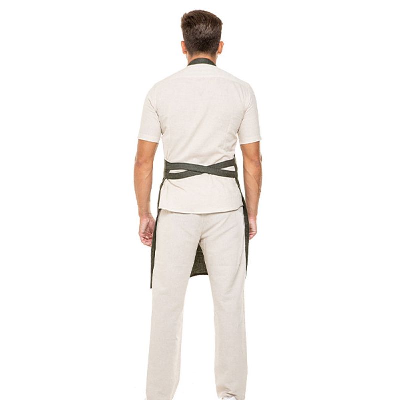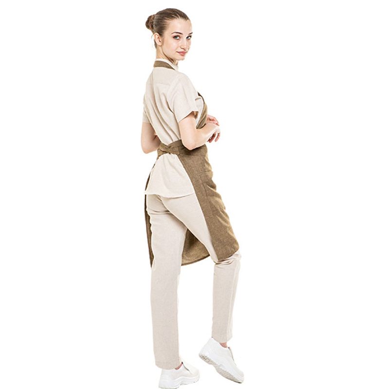 Grembiule di stile realizzato in un raffinato tessuto misto poliestere che garantisce un'ottima comodità durante il lavoro.