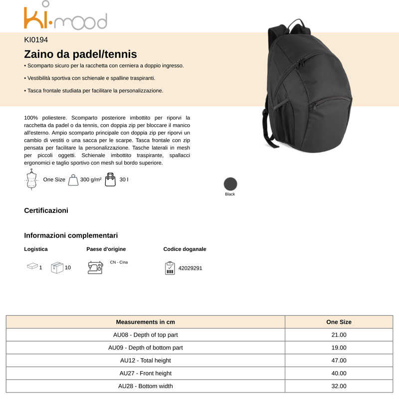 ki0194 | zaino da padel e tennis da personalizzare online su Gecoshopping a prezzi scontati