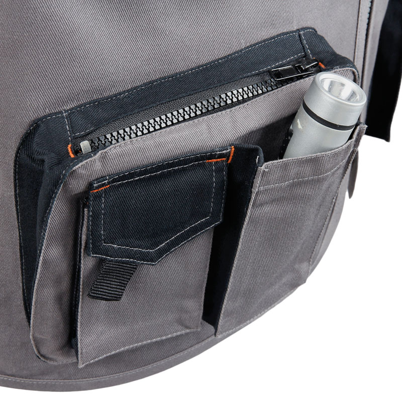 - doppio taschino e tasca sul petto con pattina e chiusura in velcro