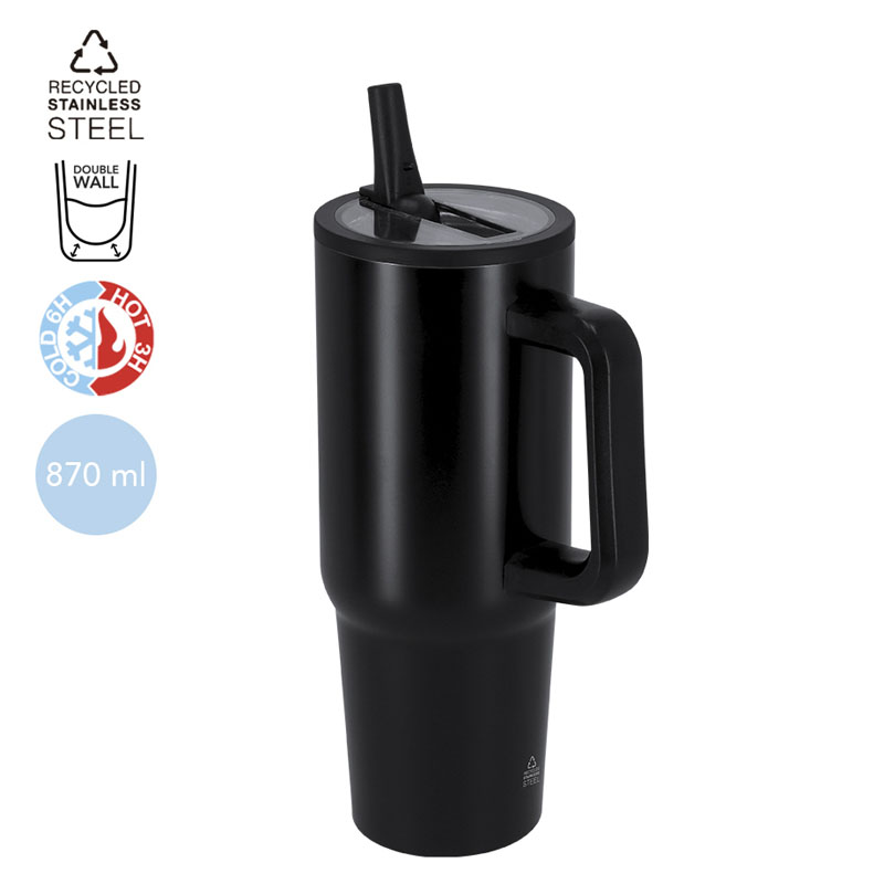 • Caraffa termica da 870 ml realizzata in Acciaio Inox Riciclato con doppia parete, che garantisce una migliore e più duratura conservazione della temperatura, sia per bevande calde che fredde.