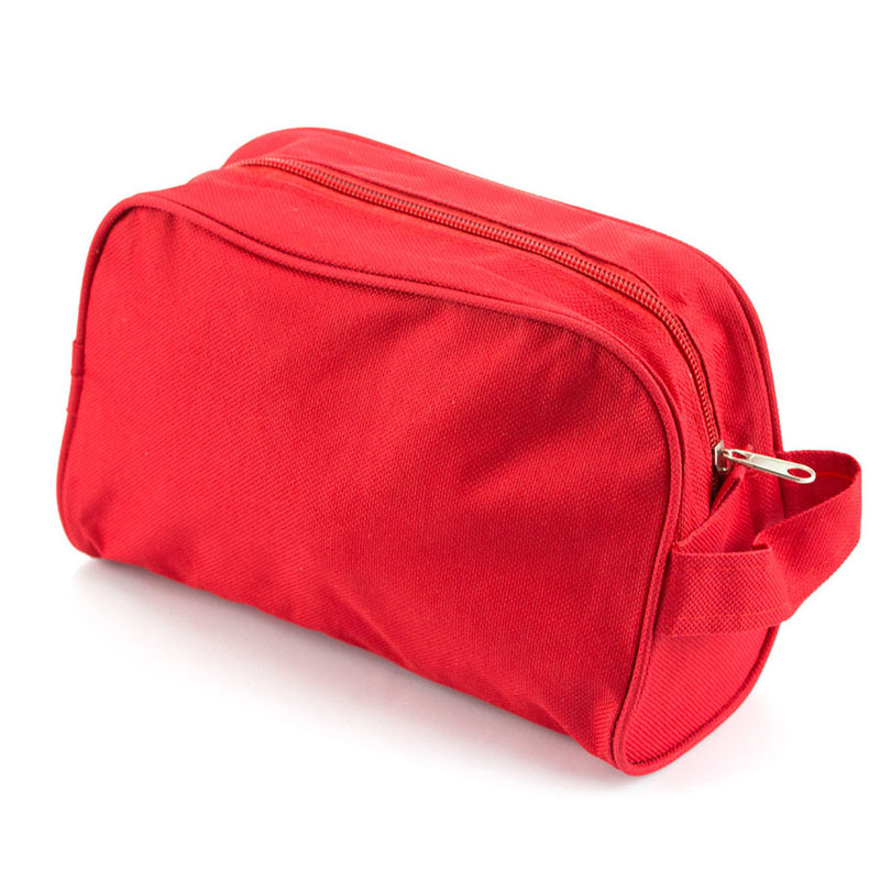 Beauty bag multiuso in resistente poliestere 600D, con cerniera, maniglia per il trasporto e piping di rinforzo in tinta abbinata.