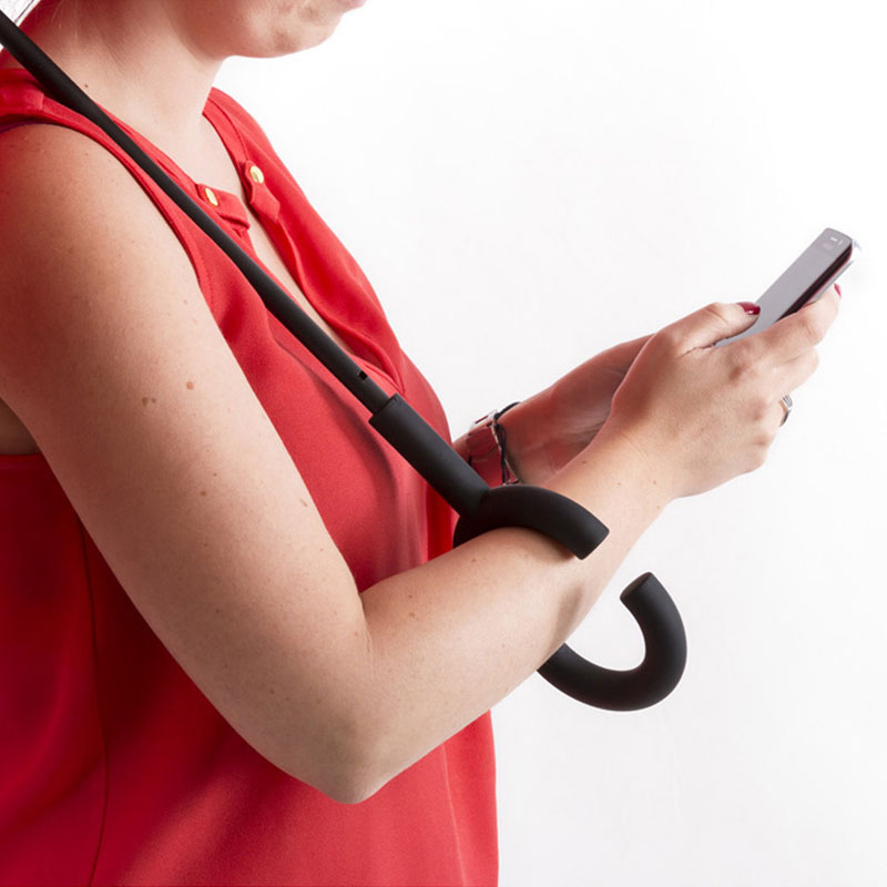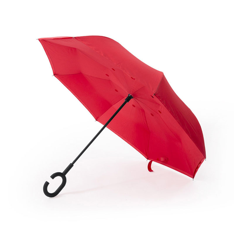 Ombrello reversibile con 8 pannelli, in seta naturale, con un'impugnatura originale che permette le mani libere.