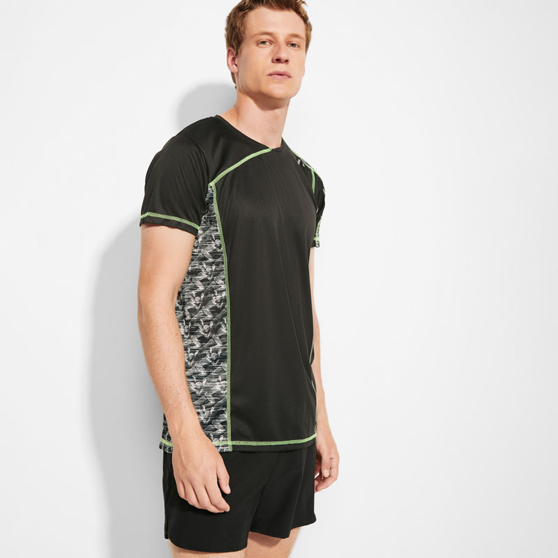 T-shirt sportiva ecologica da personalizzare, con pannelli stampati.