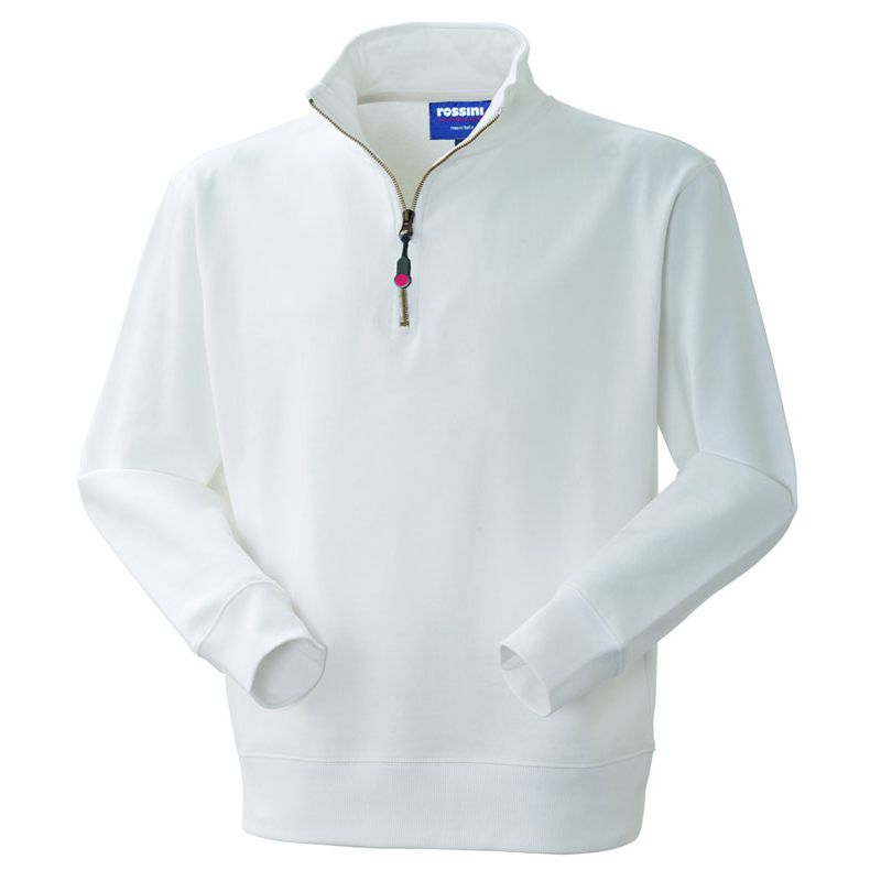- La felpa di colore bianco ha la zip in metallo e il parasudore in tinta