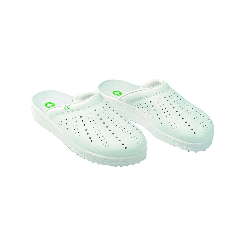 - zoccolo in pelle forata traspirante colore bianco