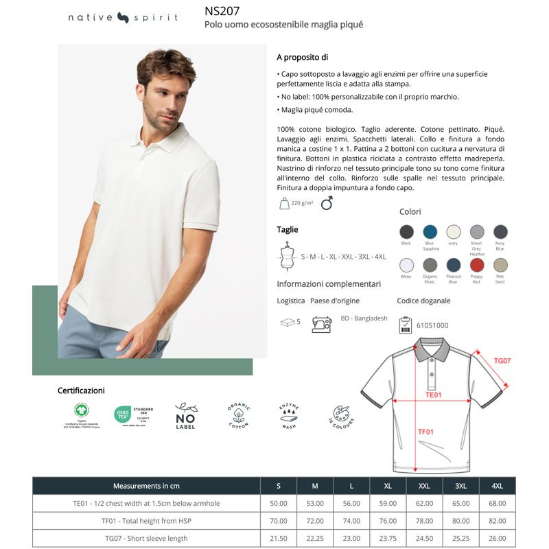 ns207 | polo uomo piquè ecosostenibile da personalizzare online su Gecoshopping a prezzi scontati