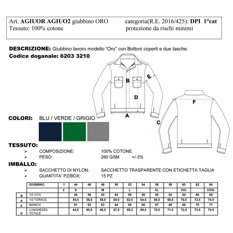 Giubbino professionale da lavoro collezione Oro.