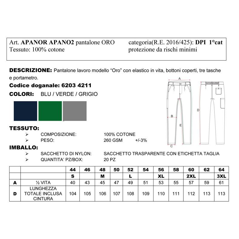 apano | pantaloni lavoro oro da personalizzare online su Gecoshopping a prezzi scontati