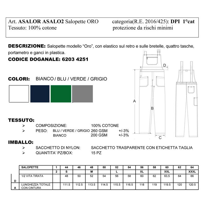 asalo | salopette lavoro oro da personalizzare online su Gecoshopping a prezzi scontati