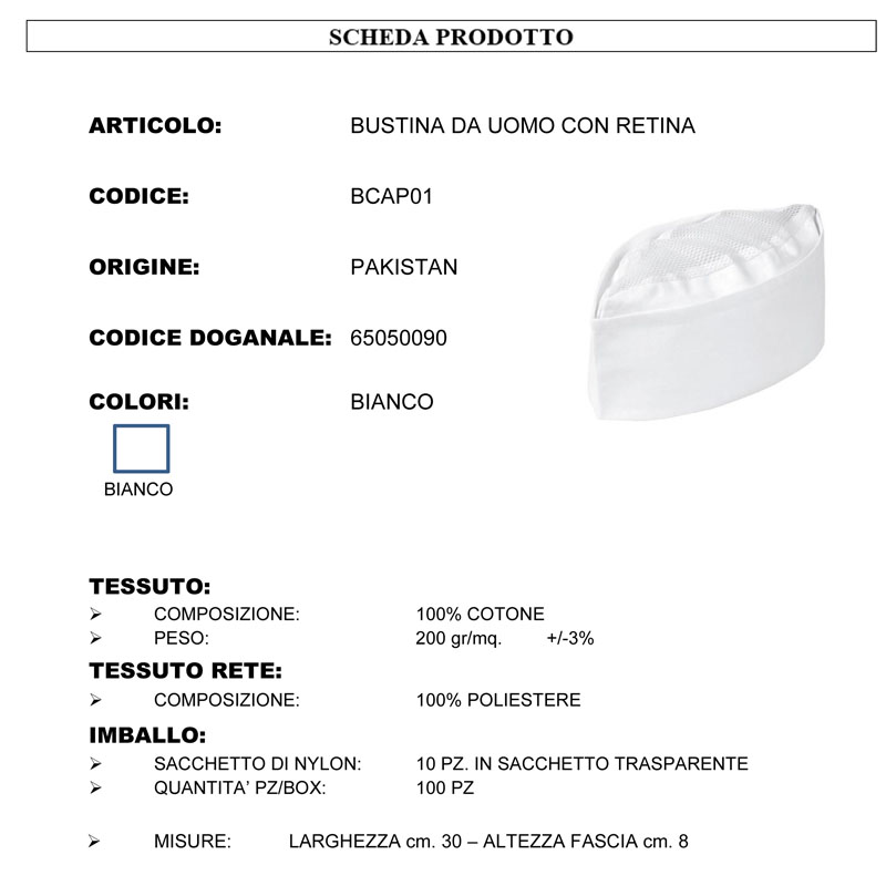 Bustina con retina da lavoro linea HORECA per Ristorazione.