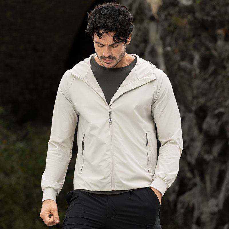 Giubbino con trattamento idrorepellente in tessuto tecnico elasticizzato