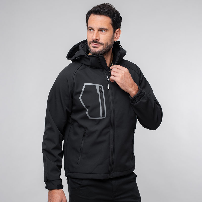 Giubbino in softshell a tre strati, impermeabile e traspirante