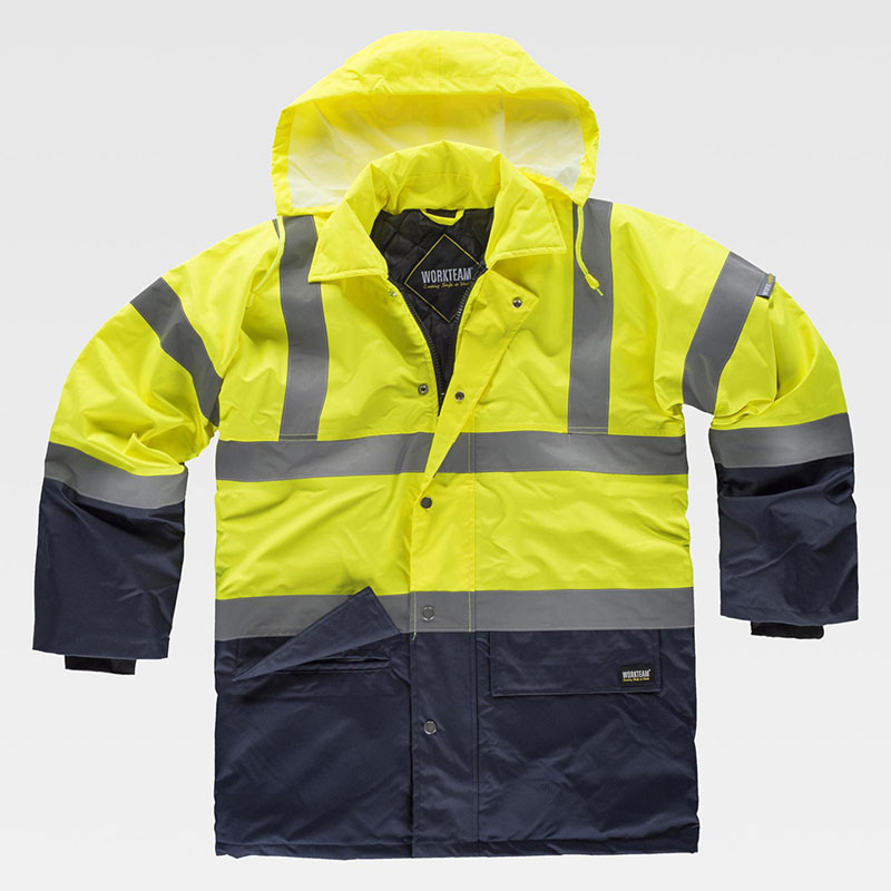 - Parka impermeabile imbottito bicolore certificato alta visibilità
