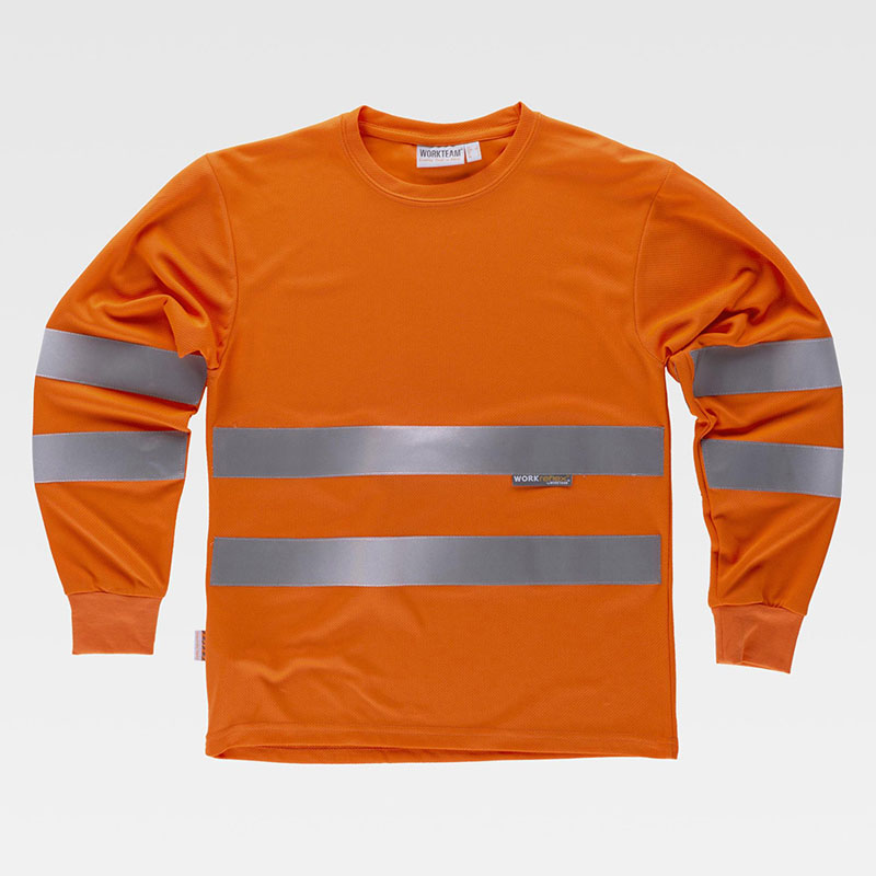 - T-shirt certificata alta visibilità girocollo maniche lunghe e polsi elastici