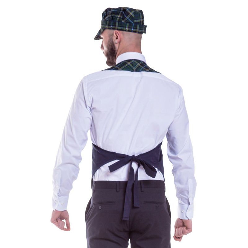 Grembiule a Gilet realizzato in tessuto scozzese, innovativo nel design che unisce l'eleganza del gilet alla comodità del grembiule.