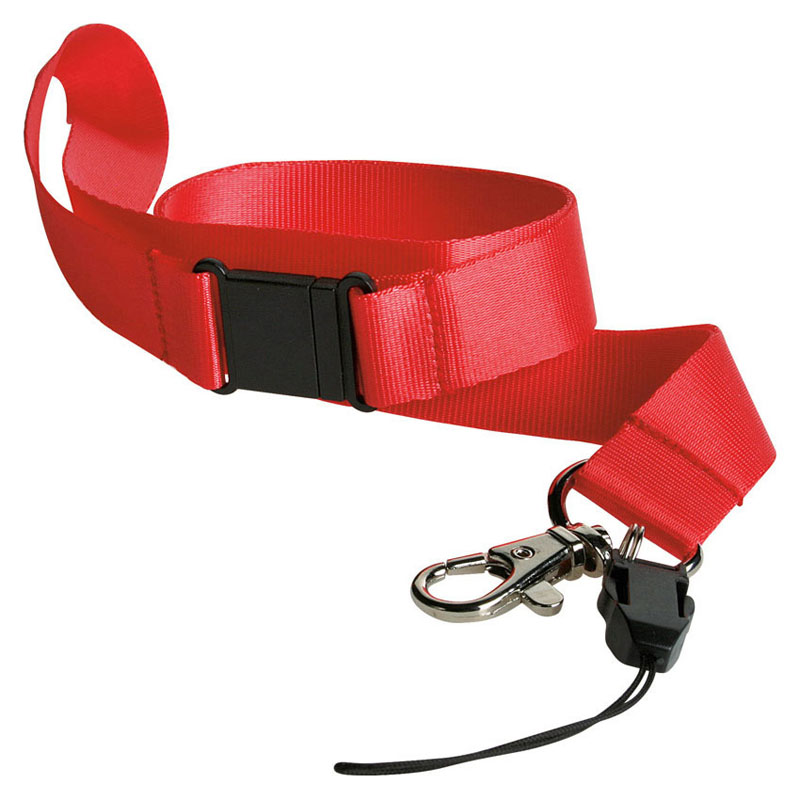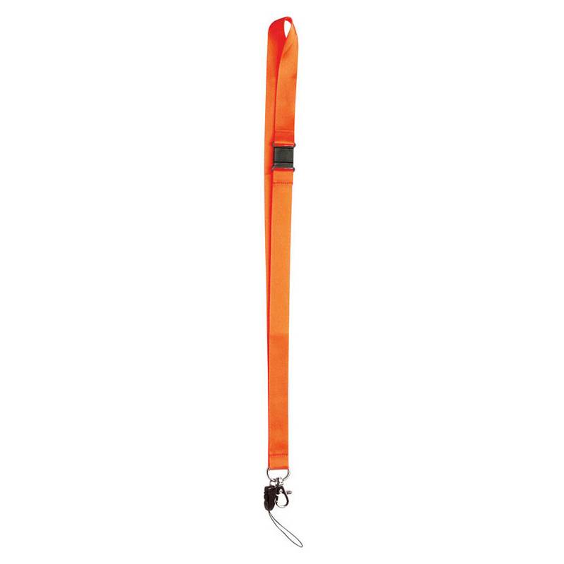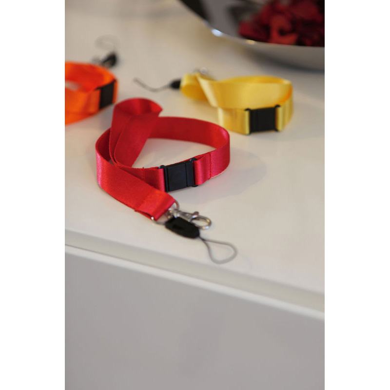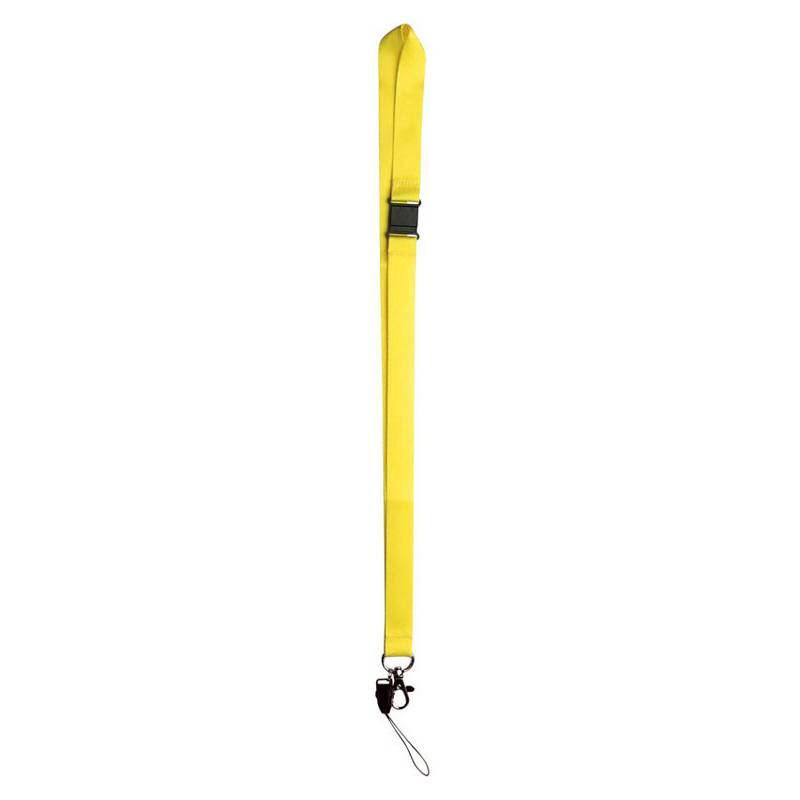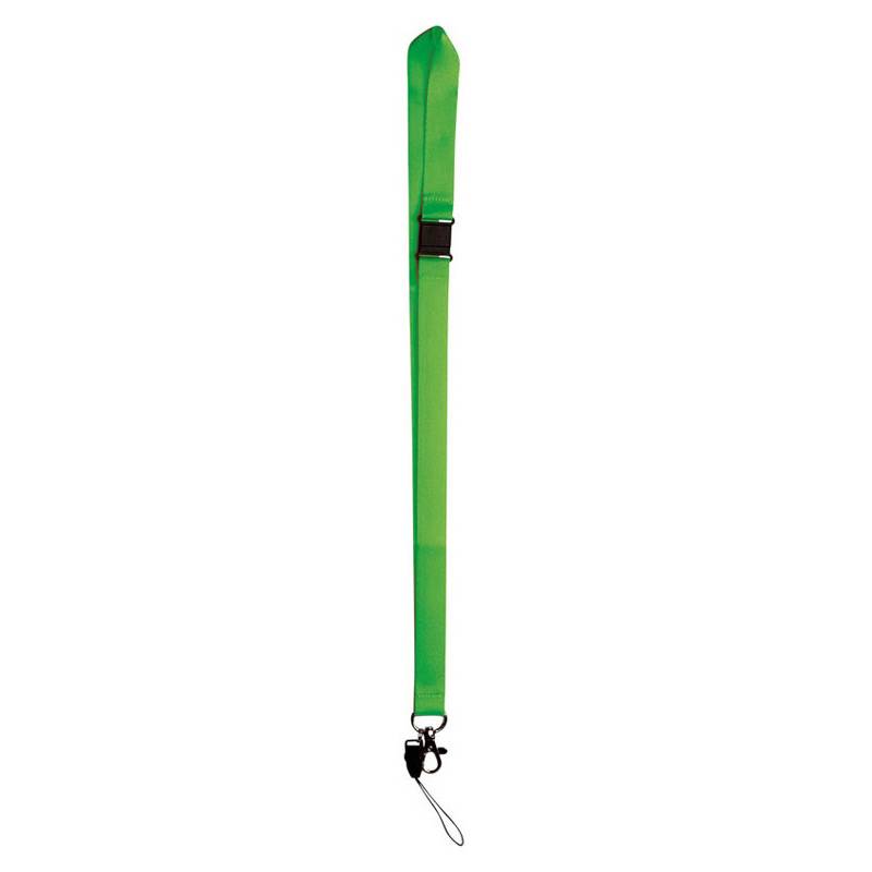 Porta badge in nylon con fibbia di sicurezza, moschettone in metallo e aggancio per cellulare.