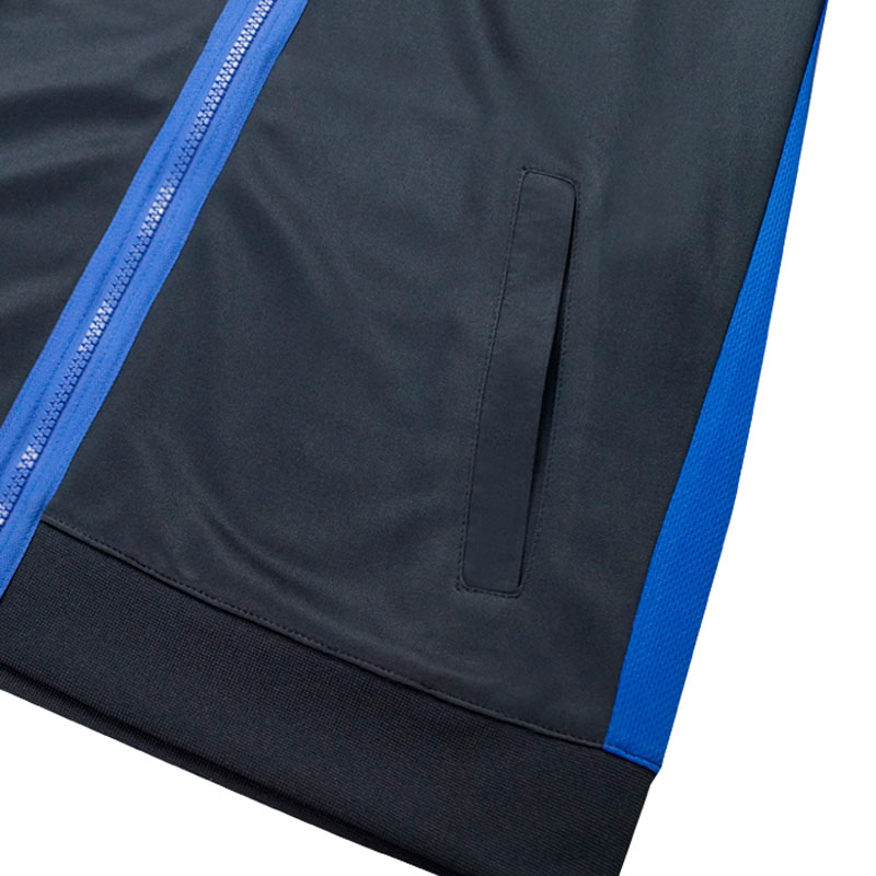 Giacca tecnica sportiva da allenamento con zip frontale e tasche laterali, realizzata in poliestere con inserti in mesh per migliorare la traspirabilità.
