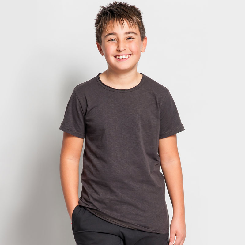 Maglia fiammata bambino scollo tondo manica corta a taglio vivo