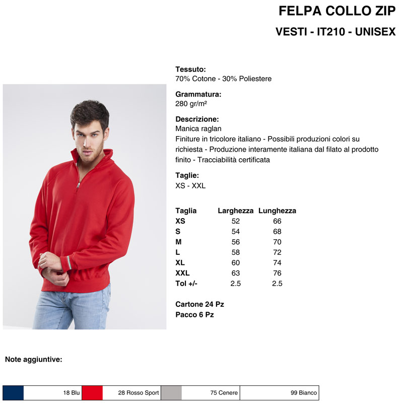 it210 | felpa collo zip tricolore da personalizzare online su Gecoshopping a prezzi scontati