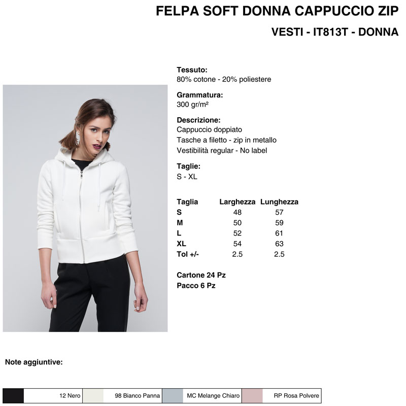 IT813T | Felpa soft donna cappuccio zip