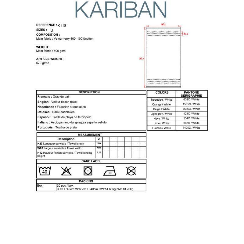 K118 | Asciugamano da spiaggia aspetto velluto