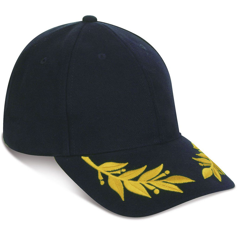 Cappello 6 pannelli in cotone pesante pettinato con ricamo decorativo sulla visiera, chiusura con fibbia in metallo.
