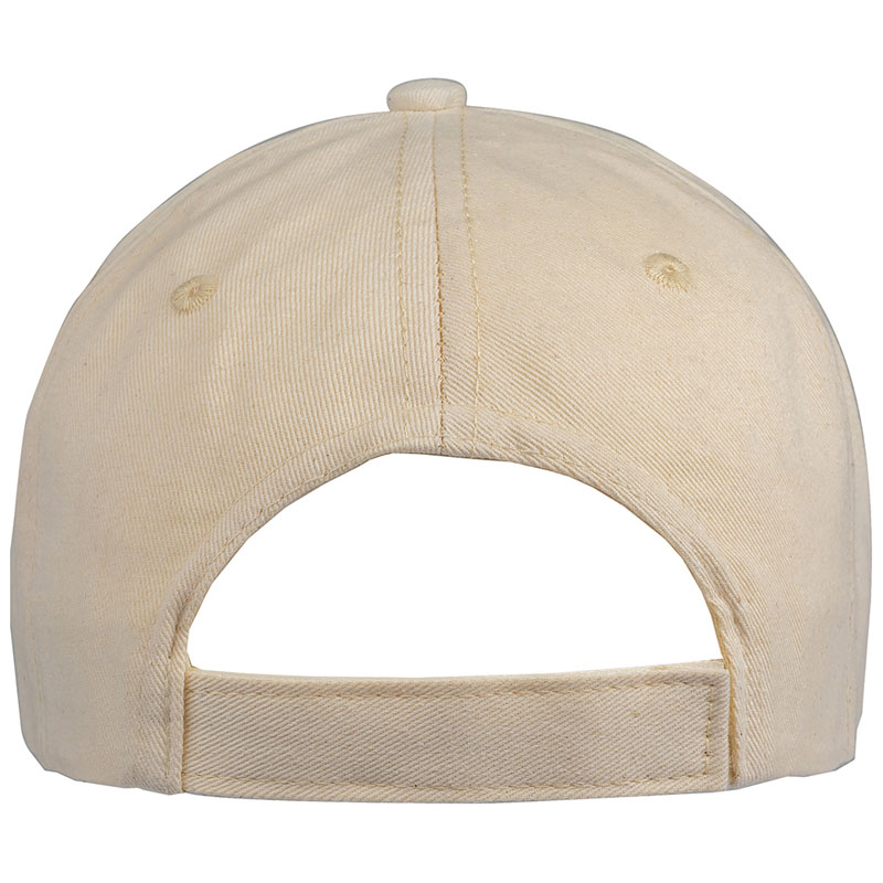 Cappello golf 5 pannelli realizzato in cotone organico, con visiera rigida precurvata e chiusura in velcro.