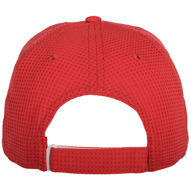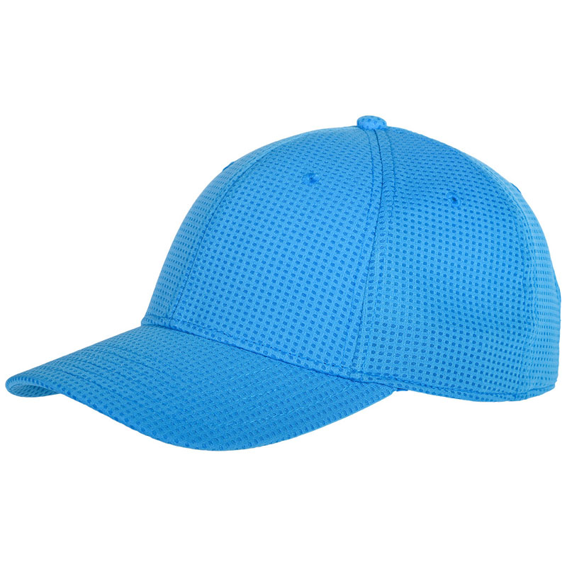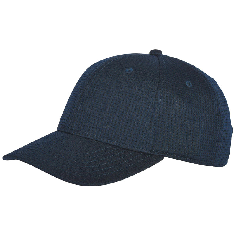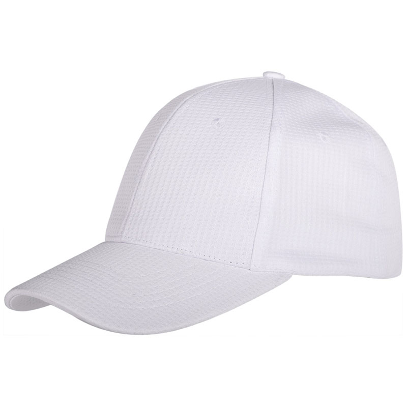 Cappello 6 pannelli, in morbido poliestere con lavorazione a celle, visiera rigida precurvata, chiusura in velcro.