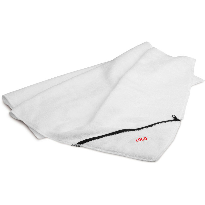 Asciugamano da palestra, 450 gr./mq., in morbido cotone, con pratica tasca incorporata nell'asciugamano, richiudibile in comodo sacchetto in nylon.